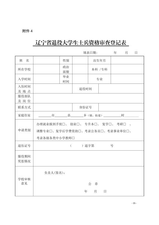 辽宁省退役大学生士兵资格审查登记表
